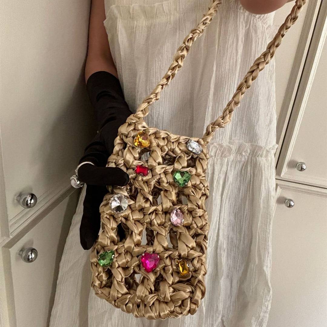 Subject: Colorful Women Woven Crochet Bag Diamond Shoulder Macrame Handmade Bag