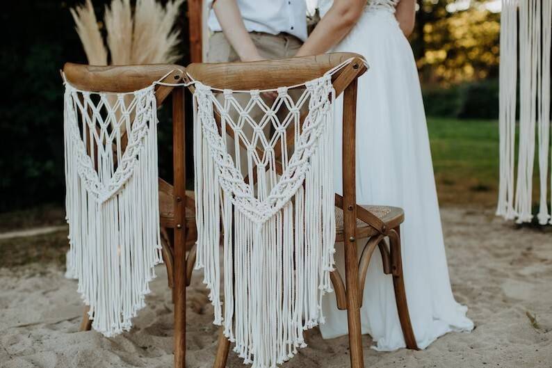 Eremony Cotton Handmade Backdrop Decor 2 Pieces Macrame Chair Cover Wedding